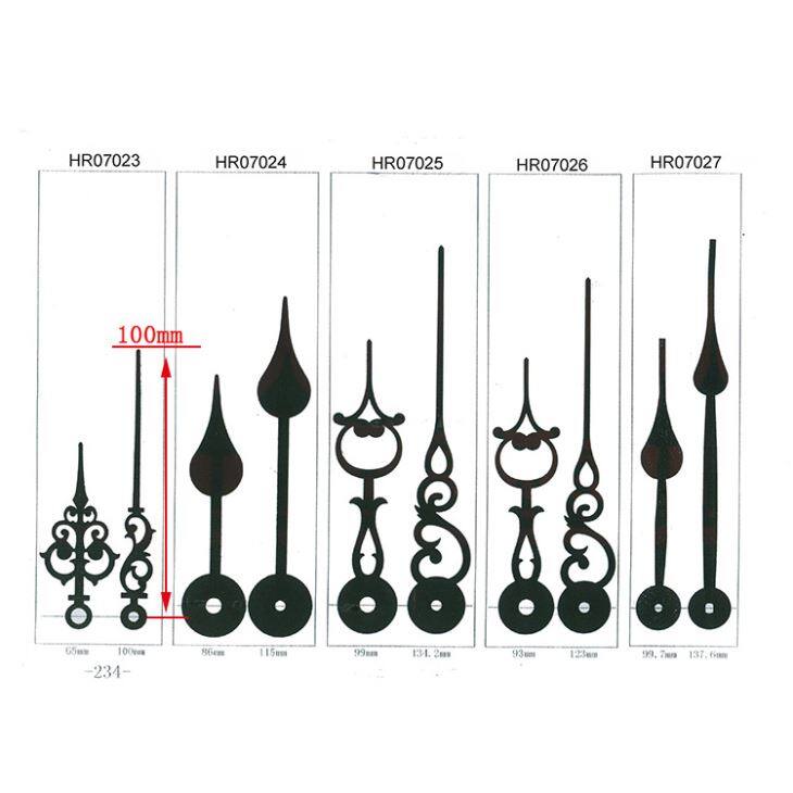 Hoe meet je de lengte van de klokwijzer? De lengte van de klokwijzer is van het klokgat tot het einde, in plaats van van het begin tot het einde. Hengrong klok bedrijf kan klokwijzers produceren met allerlei kleuren, waaronder zwart, rood, zilver, goud, wit en ga zo maar door. Aangepaste kleuren zijn ook acceptabel omdat we een fabriek hebben en dan kunnen we elke gewenste kleur produceren. Vertel ons uw gewenste kleur en dan kunnen we het produceren. Wat betreft het materiaal van de klokwijzers, we hebben aluminium, koper en roestvrij staal. De dikte van de aluminium uurwerkwijzers is 0,4 mm, 0,5 mm en 0,9 mm. De dikte van de roestvrijstalen uurwerkwijzers en koperen klokwijzers is 0,3 mm en 0,5 mm.